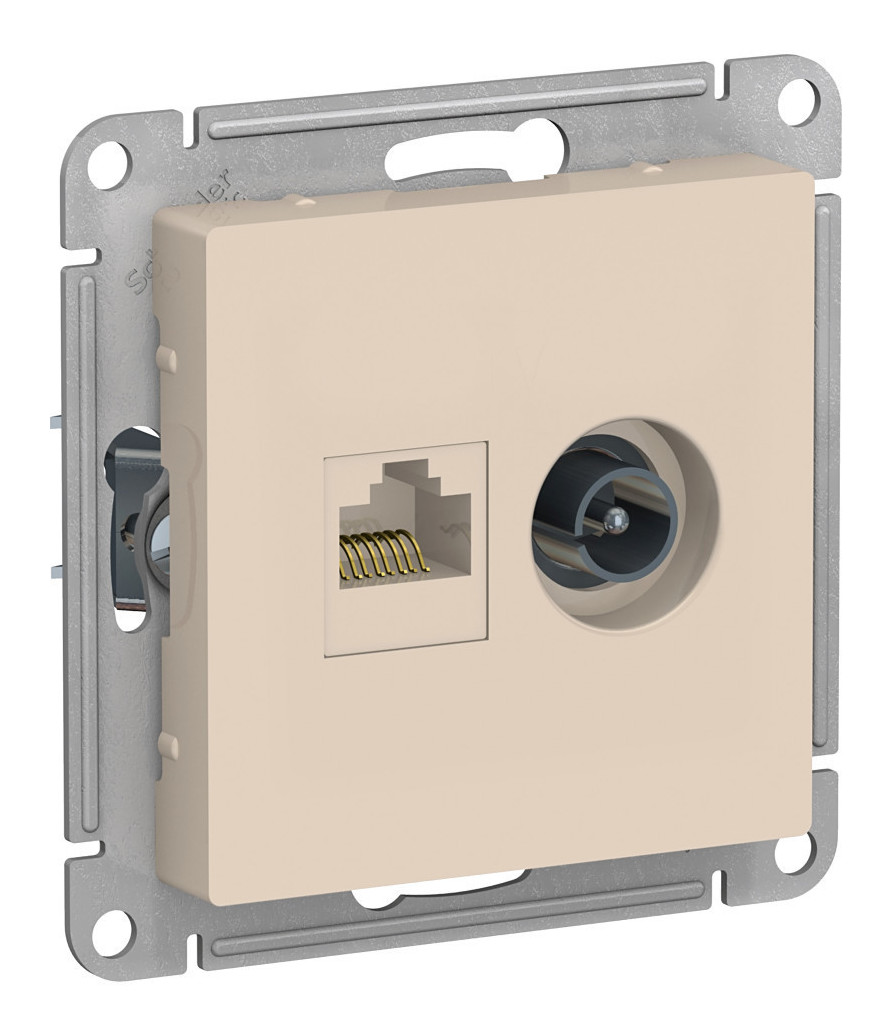 Двойная комбинированная розетка ATLASDESIGN RJ45+TV (бежевая) предназначена для подключения компьютера к локальной сети и телевизора к антенне. Лицевая панель из ABS-пластика устойчива к царапинам и выцветанию. Усиленные монтажные лапки обеспечивают надежную фиксацию механизма в подрозетнике при скрытой проводке.